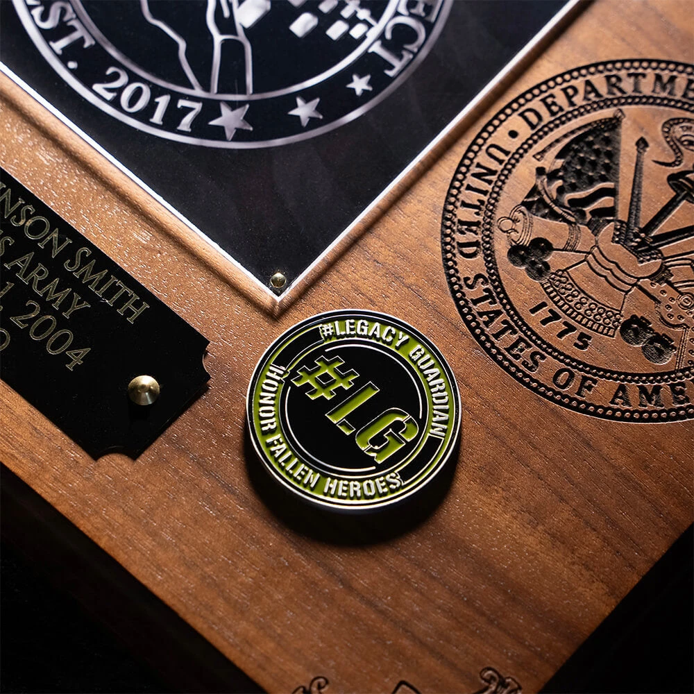 This one-of-a-kind #LegacyGuardian Challenge Coin is a testament to your unique and essential role in our mission to Honor our Fallen. Whether you carry it with you or display it proudly, it’s a tangible reminder of your dedication to giving back and changing lives. Limited quantity available – add one to your cart today!