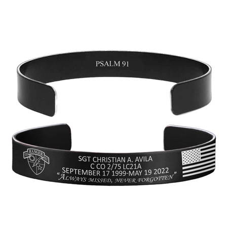 These beautiful, laser engraved Wristbands are made to order in memory of our Fallen Heroes. Proceeds from the wristbands go towards creating Memorial Plaques for the families of our Fallen Heroes, at no cost to them, be they Military, Law Enforcement, or First Responders.