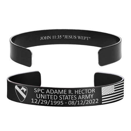 These beautiful, laser engraved Wristbands are made to order in memory of our Fallen Heroes. Proceeds from the wristbands go towards creating Memorial Plaques for the families of our Fallen Heroes, at no cost to them, be they Military, Law Enforcement, or First Responders.